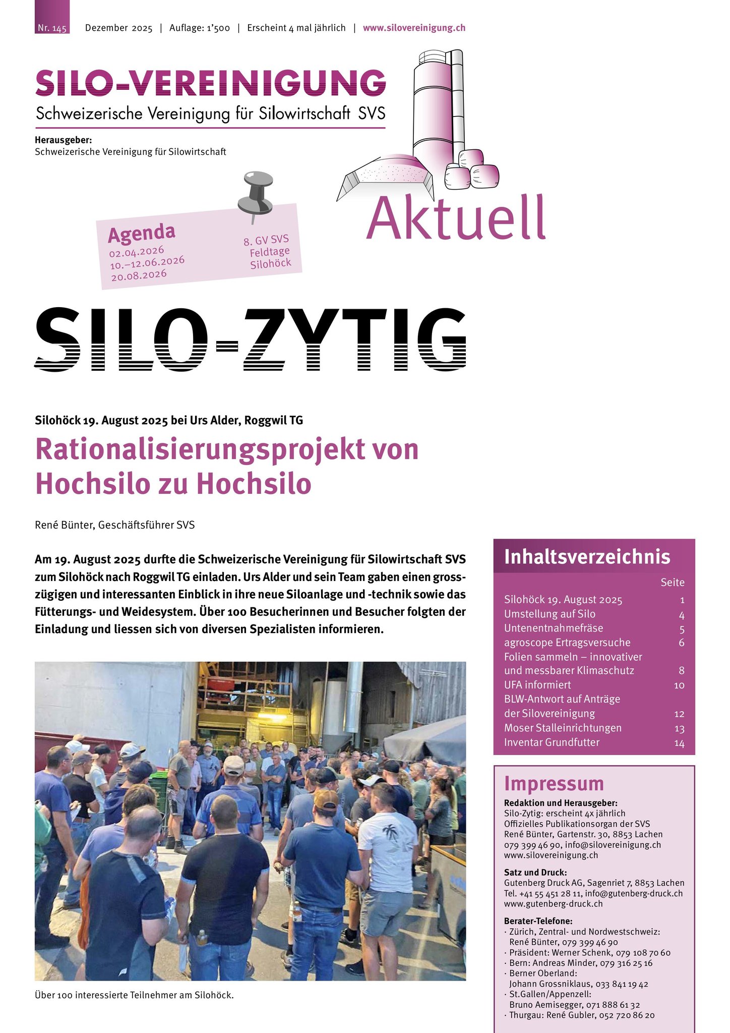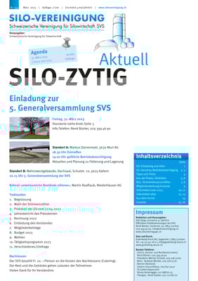 Mitglieder der Schweizerischen Vereinigung für Silowirtschaft SVS profitieren von regelmässigen News via Silo-Zytig. Dank diesem Knowhow-Transfer verfügen die Leser/innen über aktuelles Wissen und das Rüstzeug für eine optimale Silage.
