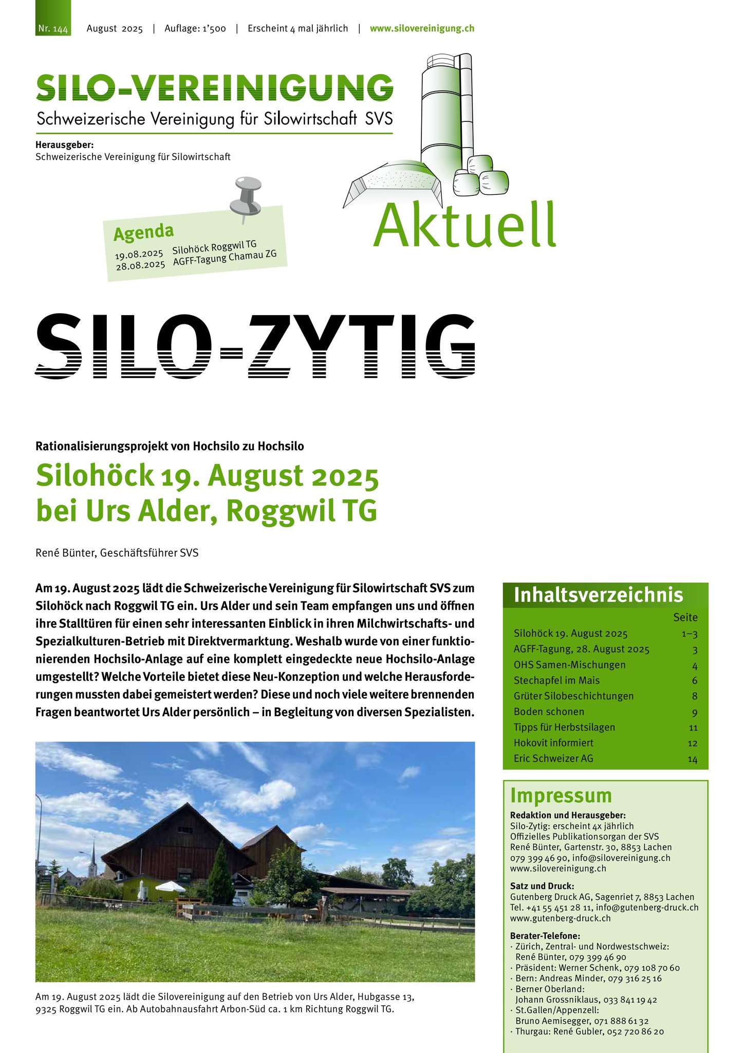 August 2025: Unsere Mitglieder finden in Kürze die neuste Ausgabe der Silo- Zytig in den Briefkästen. Möchten Sie auch aktuell informiert bleibe, werden Sie Mitglied der Silo- Vereinigung.
