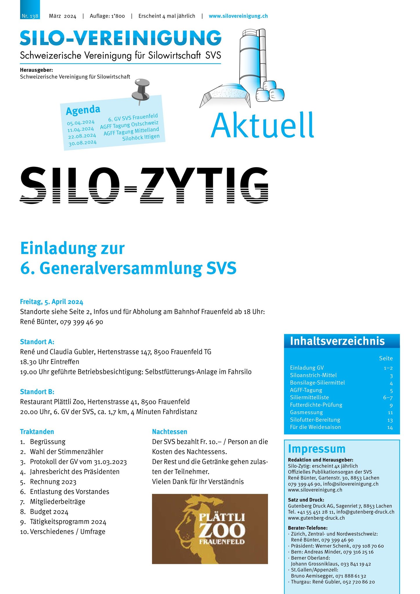 Die Silozytig informiert viermal jährlich direkt aus Praxis, Beratung und Forschung zur Silowirtschaft.