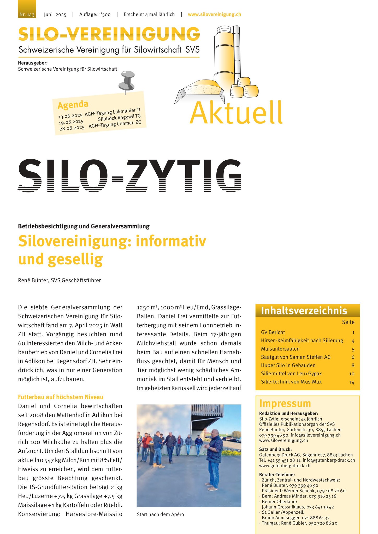 Juli 2025: Am 28. August 2025 sind wir von der Silovereinigung an der AGFF- Futterbautagung am Schluechthof in Cham ZG mit einem Stand dabei. Detaillierte Informationen entnehmen Sie dem Flyer. Wir freuen uns Sie in Cham begrüssen zu dürfen.